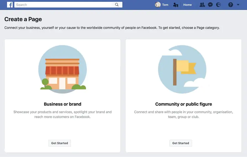 Facebook size iki tür Sayfa (Page) seçeneği sunar: