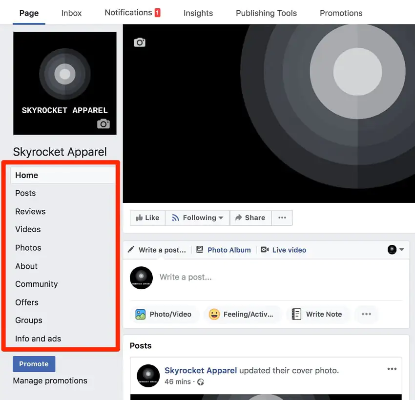 Unutmayın; bunlar, Sayfa’nızın sol tarafındaki kenar çubuğunda, profil resminizin altında görünen sekmelerdir.