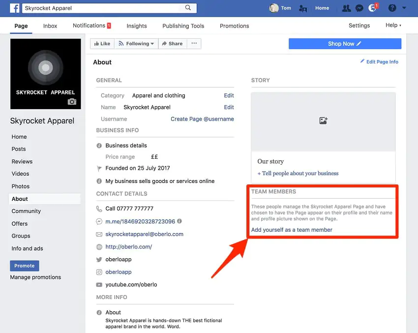 Bunu yapmak, güveni ve kredibiliteyi artırır. Ayrıca, ekip üyeleri eklemek, Facebook İşletme Sayfanızı, ekip üyelerinizin sosyal medya ağlarında tanıtmanıza yardımcı olacaktır.