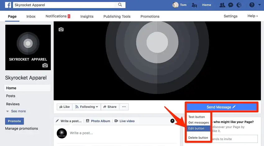 Çoğu işletme sayfası şablonunda, başlamak için “Mesaj Gönder” butonu görüntülenir.