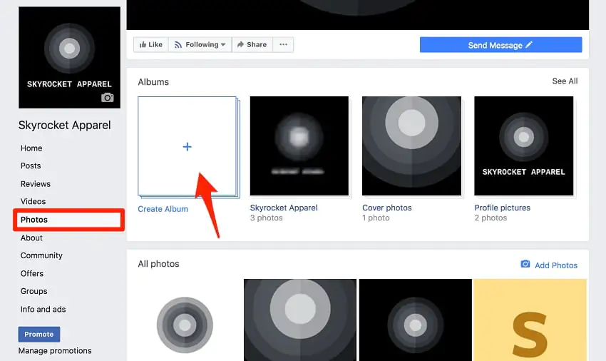 Fotoğraf eklemek için, “Fotoğraflar (Photos)” sekmesini ve ardından “Albüm Oluştur (Create Album)” seçeneğini tıklamanız yeterlidir.