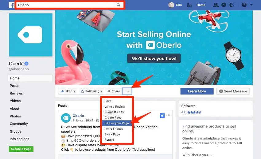Ardından “Sayfanız gibi beğen (Like as your Page)” seçeneğini tıklayın.