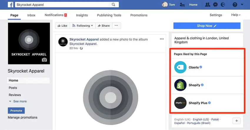 Facebook, beğendiğiniz Sayfalar’dan (Pages) rastgele üçünü, Facebook İşletme Sayfanız’da (Facebook Business Page) gösterir. Bu sayfaları, sağ taraftaki kenar çubuğunun altında görebilirsiniz.