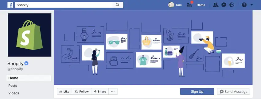 Shopify’ın kendi Facebook Sayfasında yaptığı gibi çoğu işletme, logosunu, profil resmi olarak kullanır: