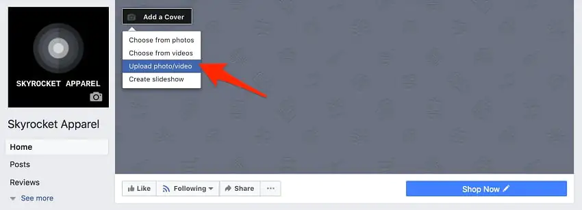 Bu aşamada Facebook sizden bir kapak fotoğrafı eklemenizi ister, ancak isterseniz, sayfanızı oluşturmayı tamamladıktan sonra bir kapak videosu yükleyebilirsiniz.