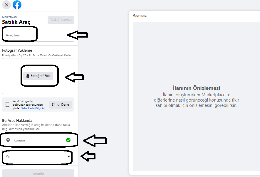 2)FOTOĞRAF: Fotoğraf yükle butonundan aracın resmini ekleyelim