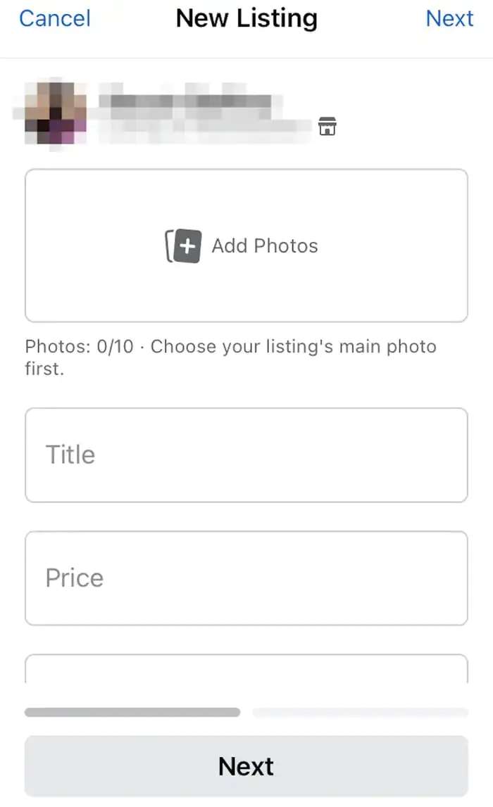 - Ürününüzle ilgili istenen bilgileri girin ve ürününüze ait en az bir fotoğraf ekleyin; daha sonra İleri (Next) butonuna dokunun.