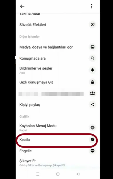 - Sonrasında kısıtlamak istediğiniz kişinin sohbet penceresini bulun.
