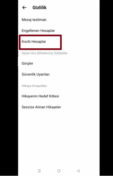 - Karşınıza gelen seçeneklerden Kısıtlanmış hesaplar ‘a dokunun.