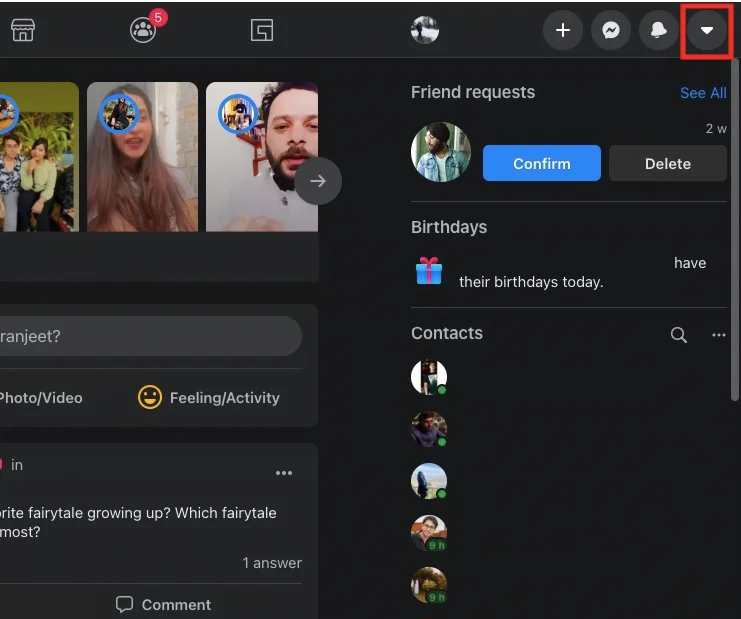 1. Sağ üst köşedeki aşağı ok düğmesine tıklayın.