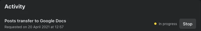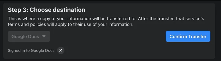 10. Transfer tamamlandığında; Facebook gönderilerinizin bir kopyasının Google Dokümanlar’a aktarıldığını belirten yeni bir bildirim alacaksınız.