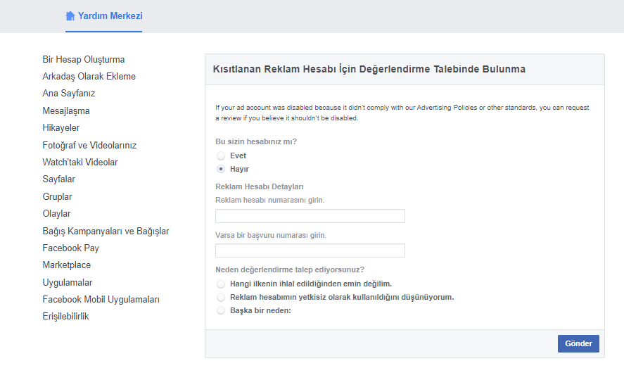 Facebook reklam hesabım kısıtlandı. Ve nasıl itiraz sürecini başlatmanız gereken makalemizi okuduğunuz için teşekkür ederiz.