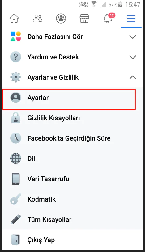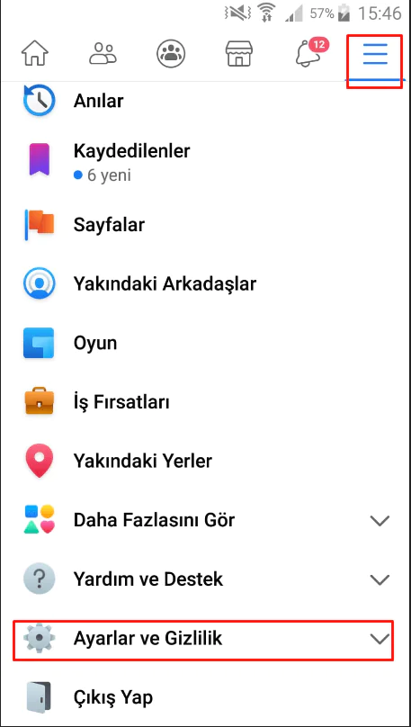 Bu işlemleri Facebook uygulamasından yapmak için