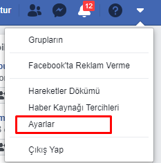 1. Facebook’un sağ üst köşesindeki account simgesine tıklayın.