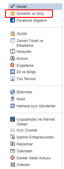 Güvenlik ve Giriş seçeneğine giriş yapıyoruz.