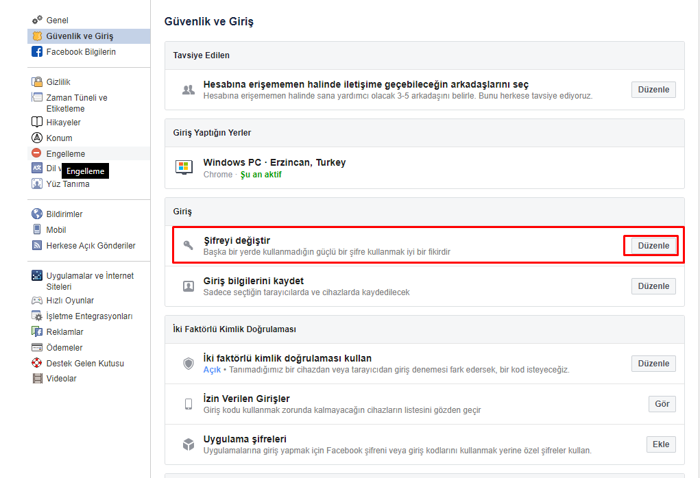 Şifreyi değiştir kısmında düzenle diyeceğiz.