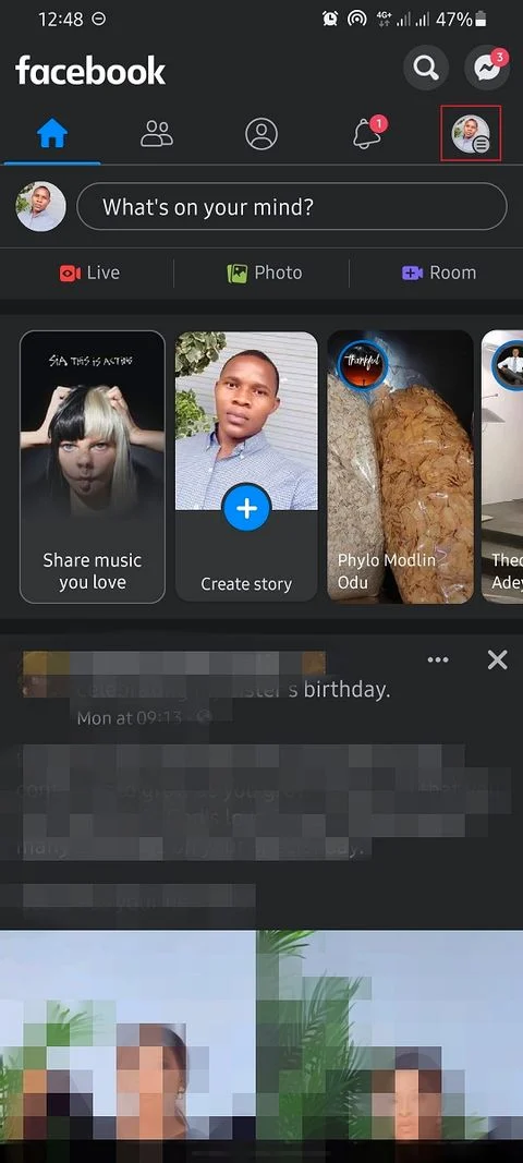 1. Telefonunuzda Facebook uygulamasını başlatın ve hamburger simgesine dokunun .