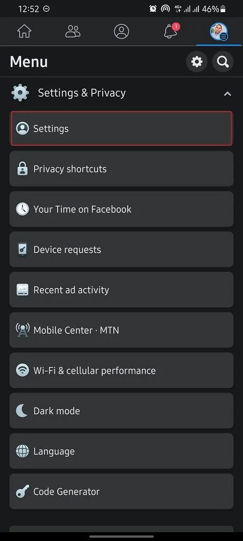 2. Aşağı kaydırın ve Ayarlar ve Gizlilik’e dokunun .