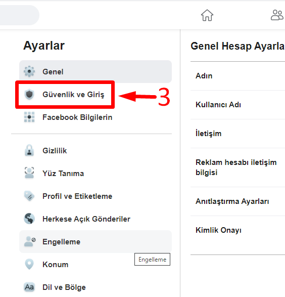 Sonrasında bu bölümde karşımıza gelen Güvenlik ve Giriş menüsünü tuşluyoruz.