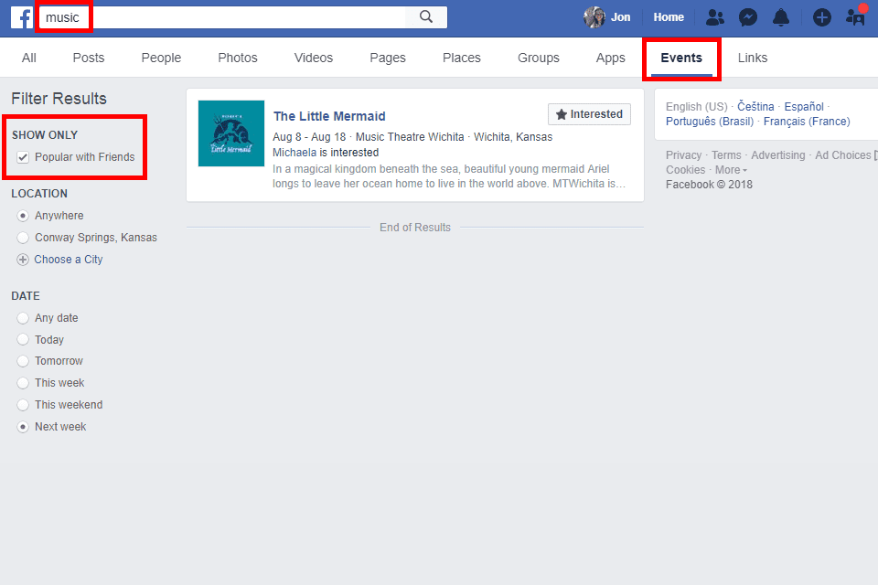 • Facebook’ta, etkinliklere katıldıklarını (etkinliklerle ilgilendiklerini) paylaşan (söyleyen) arkadaşlarınız varsa, bu etkinlikleri ‘Etkinlik (Events)’ filtresi ile kolayca bulabilirsiniz.