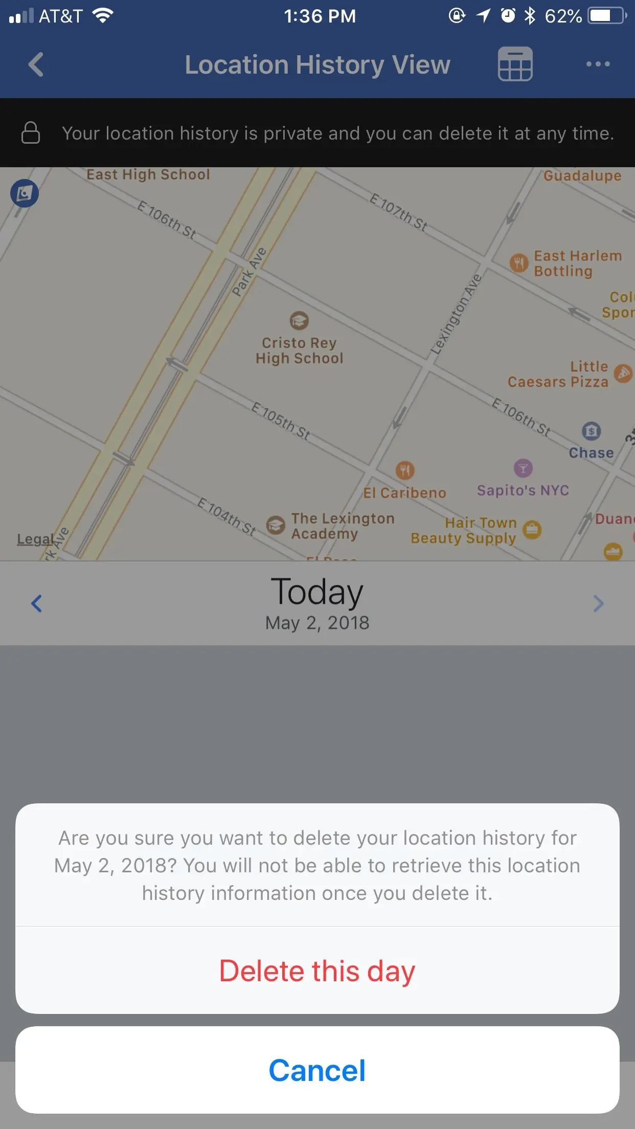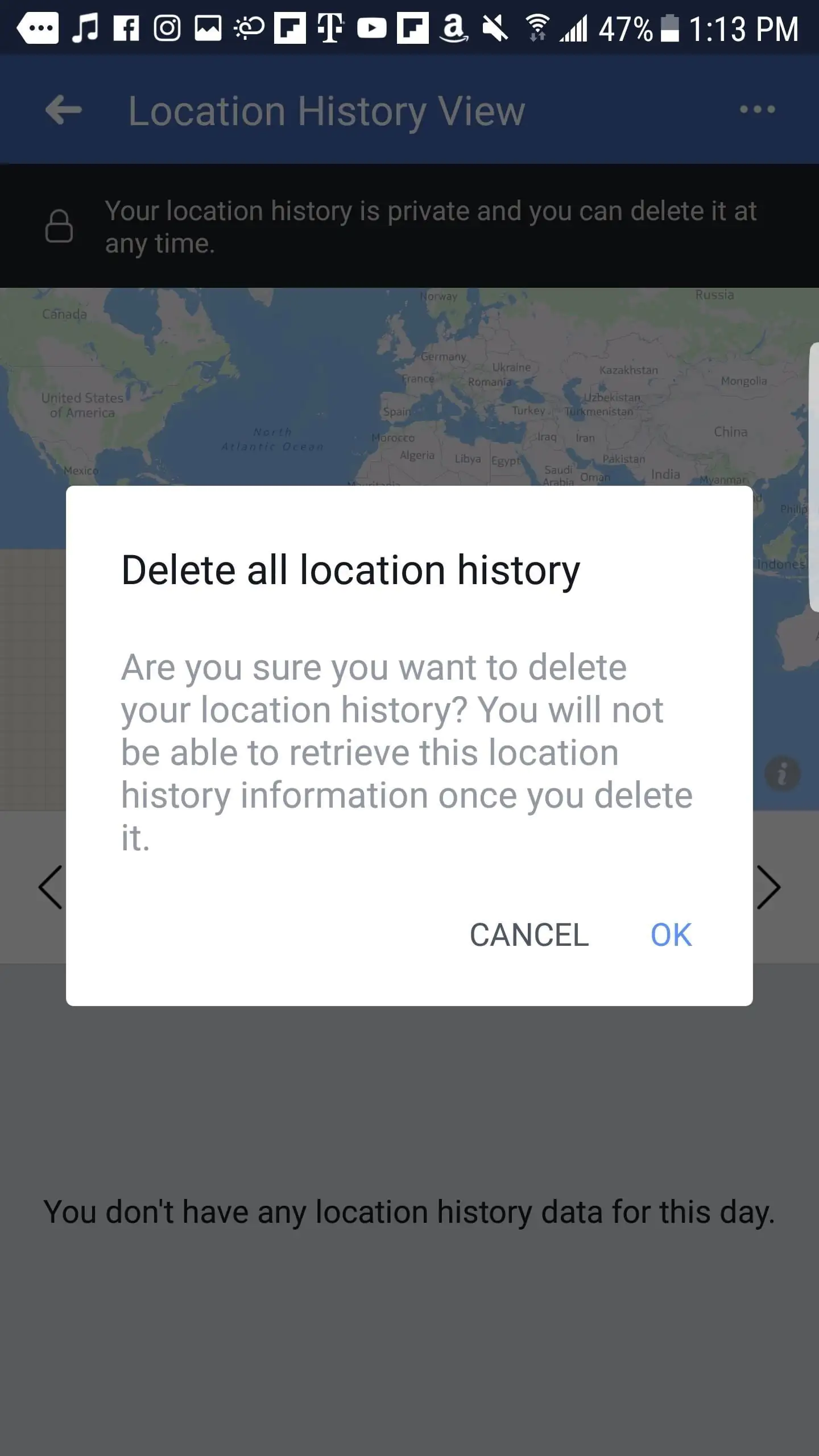 - Facebook, bu veriyi silmek istediğinizden emin olup olmadığınızı soracak. İşlemi onayladığınızda, o güne ait konum geçmişi (verileriniz) silinecek. Maalesef, özel (şahsi) kayıtları silemiyorsunuz.