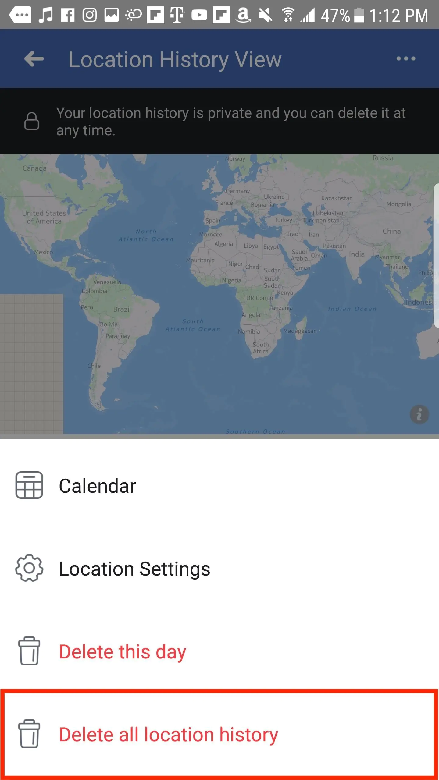 - Açılan menü listesinde Tüm konum geçmişini sil (Delete all location history) menüsüne dokunun.