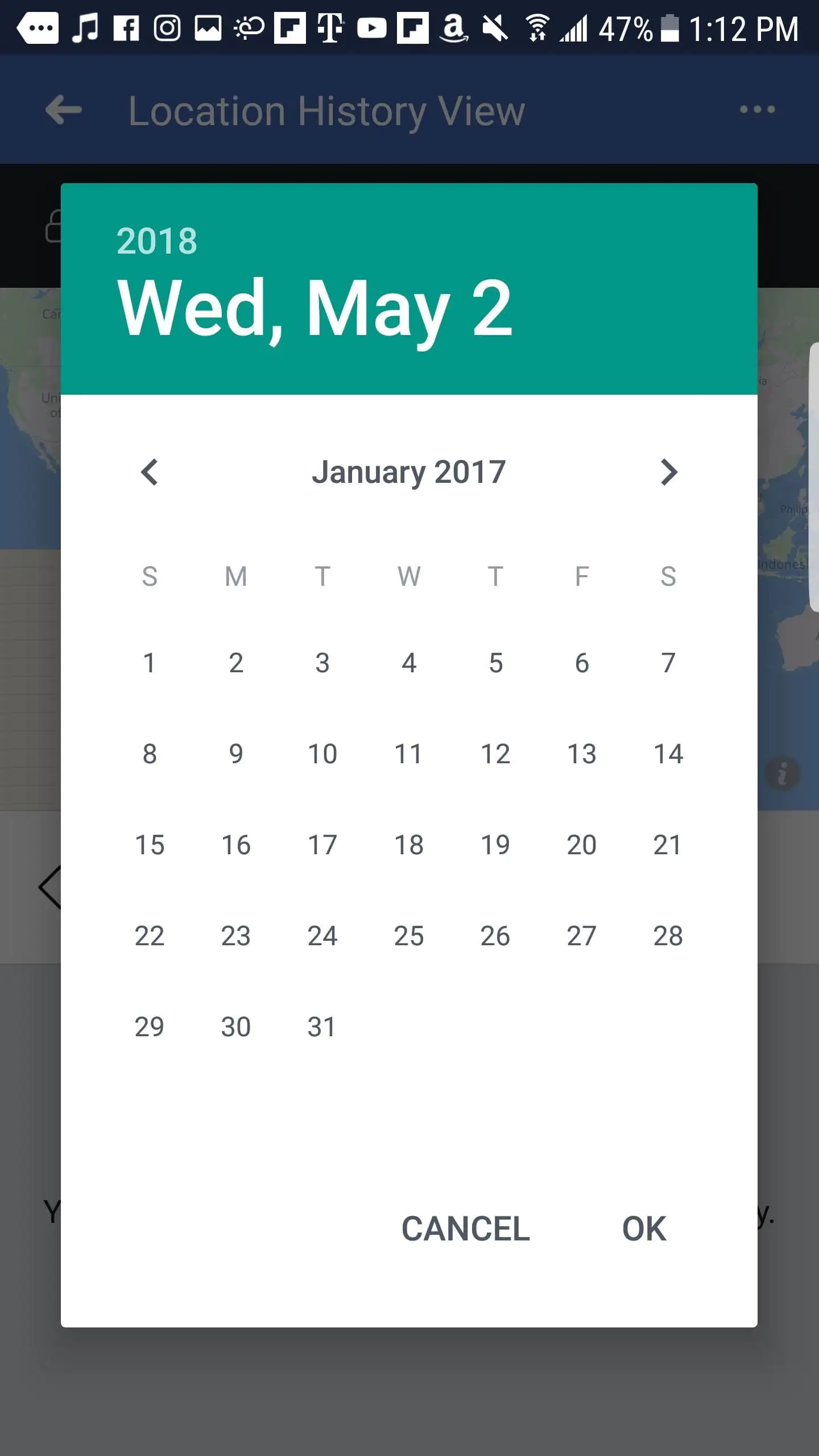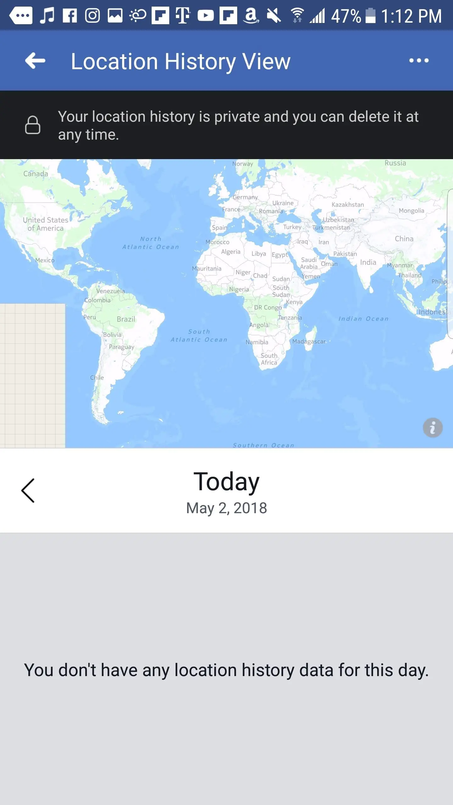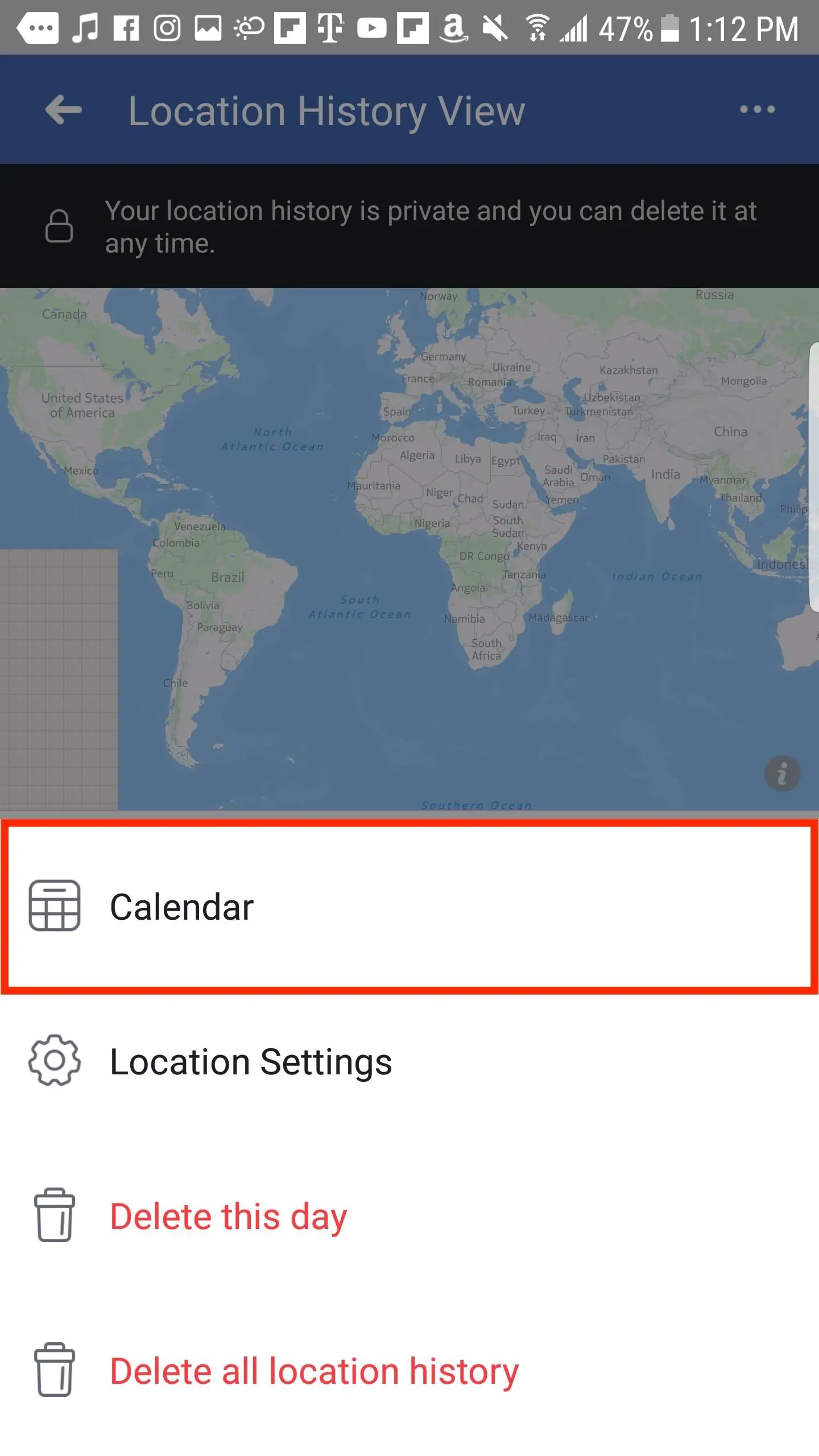 Facebook, belli bir tarih için konum verilerinize sahip değilse, ‘Bu tarih için herhangi bir konum geçmişi veriniz bulunmamaktadır’ şeklinde bir bilgilendirme alacaksınız. Eğer konum geçmişi bilgileriniz varsa, bulunduğunuz bölgeye (il, ilçe, kaza, vs) ait konum geçmişi verilerinizi göreceksiniz. Her bir kayda dokunduğunuzda (tıkladığınızda) Facebook, harita üzerinde bu kaydı (konum geçmişi kaydınızı, verinizi) gösterecek. Ok işareti simgesine tıklayarak gün-gün, bugüne kadar ki tüm kayıtları görüntüleyebilirsiniz. Tarihler arasında daha hızlı geçiş yapmak için takvim simgesine tıklayabilirsiniz veya sağ-üst köşedeki (•••) simgesine tıklayıp, daha sonra Takvim (Calendar)’e tıklayabilirsiniz. Görüntülemek için takvimden bir tarih seçin ve daha sonra Tamam (OK) butonuna dokunun.
