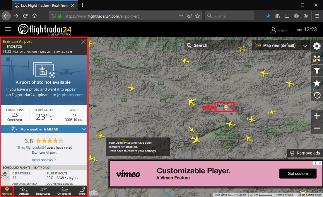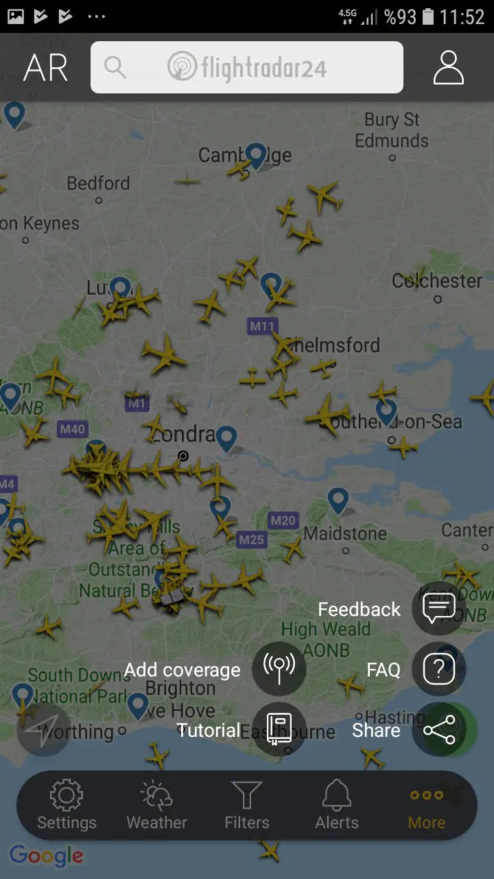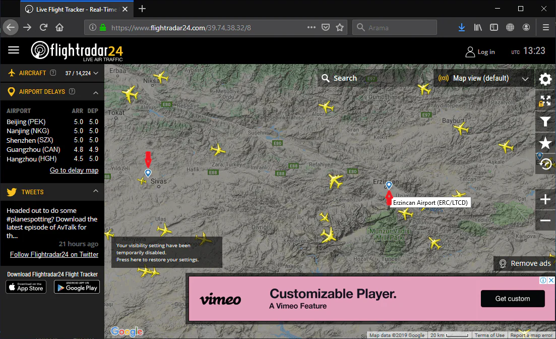 • Rastgele koordinatlara ait bir konumdaki canlı hava trafiği haritası yüklenecek. O konumdaki hava trafiğini canlı ve anlık olarak takip edebileceksiniz. Dolayısıyla, haritada uçak simgelerinin hareket ettiğini göreceksiniz.