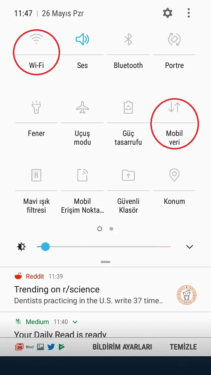 • Wi-Fi veya Mobil Veri özelliğini etkinleştirip, internet erişiminizi aktif edebilirsiniz.