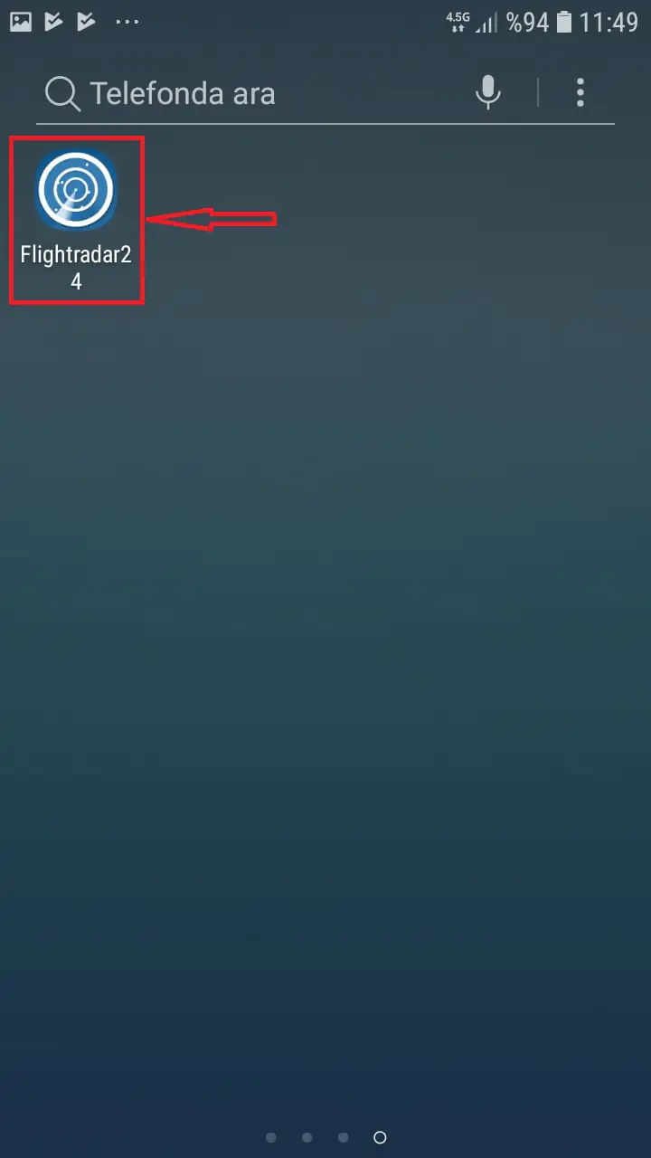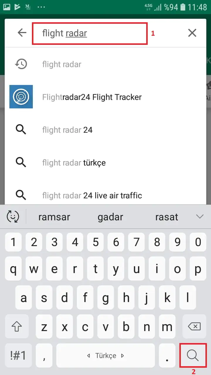 • Arama kutucuğuna ‘flight radar’ yazdıktan sonra klavyede mercek simgesi bulunan arama butonuna dokunuyoruz.