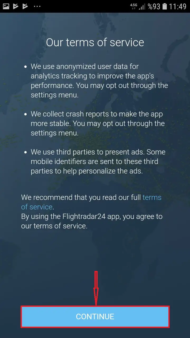 • ‘CONTINUE’ butonuna dokunuyoruz.