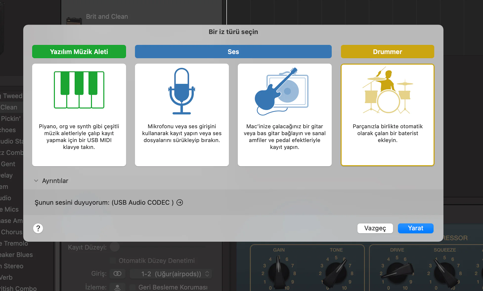 Garageband ses kayıt uygulamasında. Birden fazla cihaz bağlamanız durumunda veya yardımcı ses kullanmak isterseniz uygulama üzerinden dilerseniz ikinci bir ses yolu enstrüman ekleme şansımız var . öncelikle uygulamamızı açıyoruz.