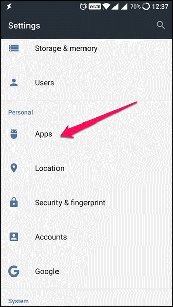 Ayarlar’a gidin ve Uygulamalar’a tıklayın.