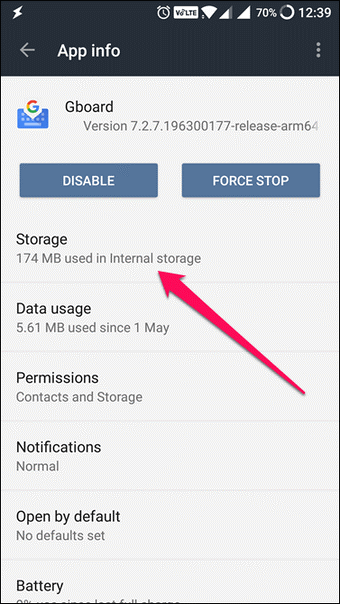 Uygulamanın içinde, önbellek veri bilgilerini göstermek için Depolama’yı seçin.