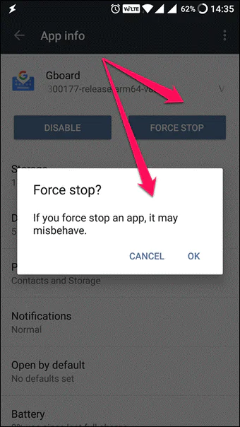 Gboard uygulamasını zorla durdurmak için, Ayarlar -> Uygulamalar -> Gboard’a geri döneceksiniz. Burada, ekranın sağ üst köşesinde “Zorla Durdur” seçeneğini bulacaksınız. Onaylamak için Tamam’ı tıklayın.