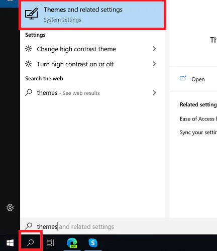 1. Görev Çubuğunuzun sol alt tarafına gidin, Arama çubuğunu seçin ve ardından Themes yazın.