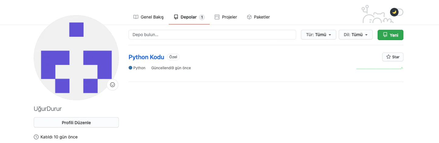 Githup sayfamızı açtıktan sonra depolar kısmına tıklıyoruz