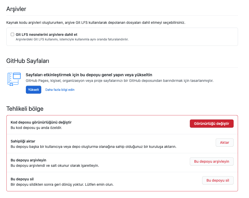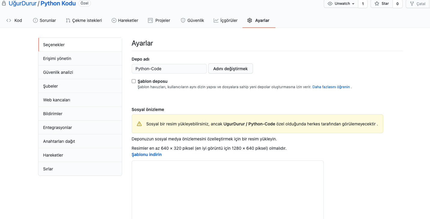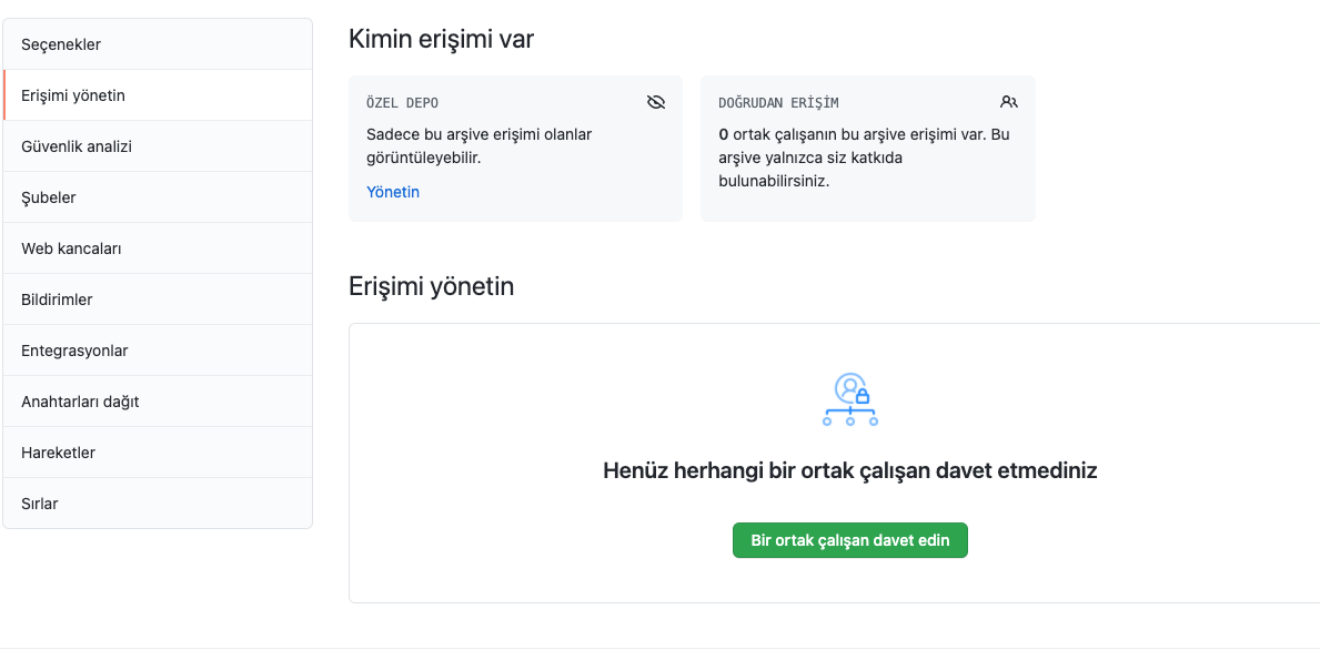 Açılan yeni pencerede kod deposu görünürlüğü değiştir kısmına tıklıyoruz.Özel depo yazan kısımda yönetin kısmına tıklıyoruz