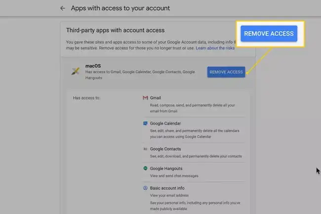 4.Erişimi iptal etmek için Erişimi Kaldır öğesini seçin .