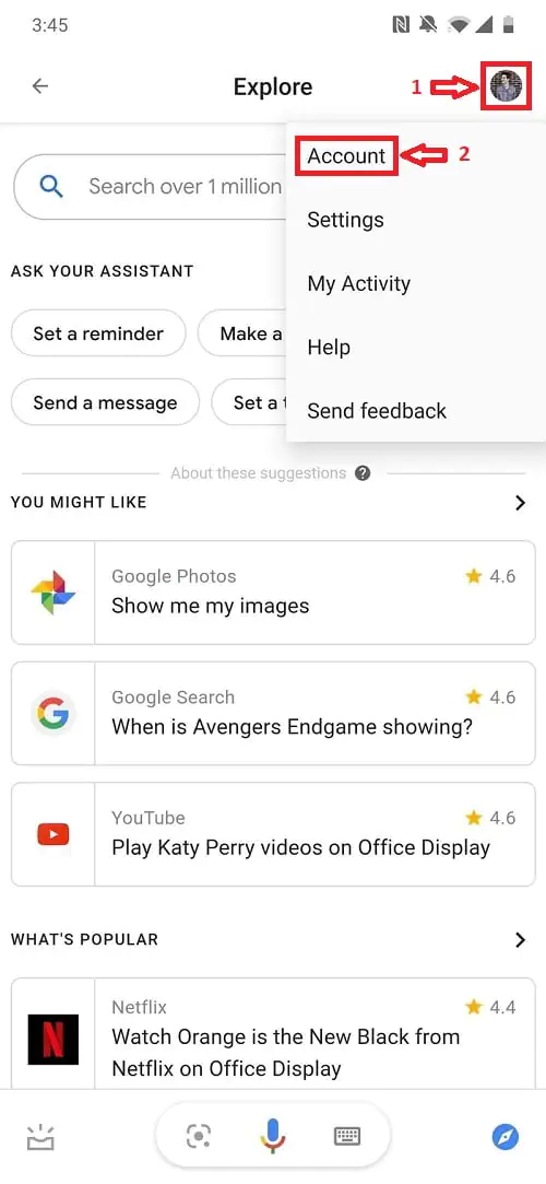 - Sağ-üst köşedeki profil resminize dokunun ve daha sonra, açılan menü listesinde Hesap (Account) menüsüne (seçeneğine) dokunun.