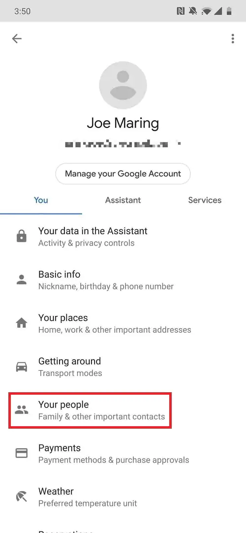 - Kişileriniz (Your People) seçeneğine (menüsüne) dokunun.