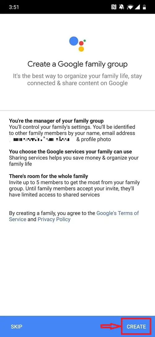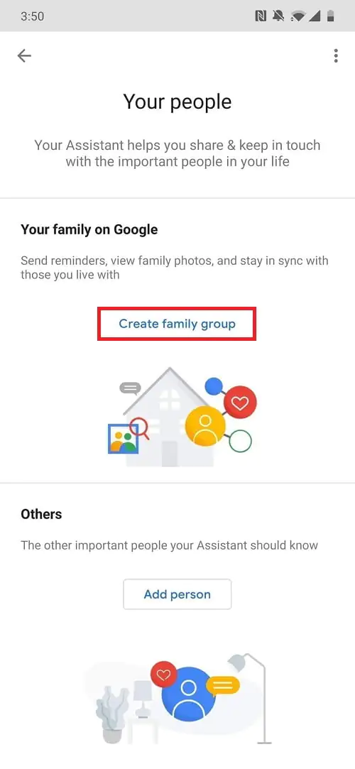 - Aile grubu oluştur (Create family group) menüsüne (butonun) dokunun.