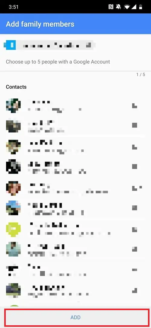 - Gelen ekranda, eklemek istediğiniz aile üyelerine dokunun ve daha sonra, ekranın altındaki EKLE (ADD) butonuna dokunun