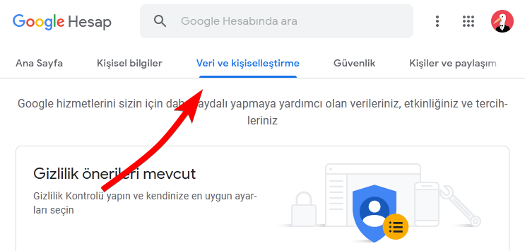 Ardından “Veri ve kişiselleştirme” sekmesine gidin.