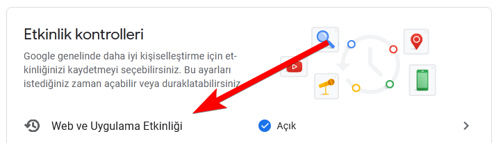 “Etkinlik kontrolleri” kategorisinden “Web ve Uygulama Etkinliği”ne tıklayın.