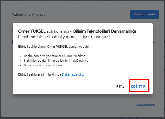 Google Benim İşletmem’de (My Business) Eski Kullanıcıları kaldırma Yeni sahip ekleme nasıl yapılır