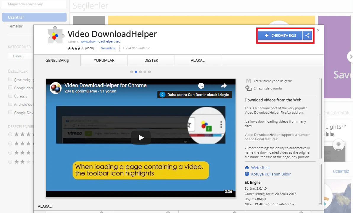 Bu yazımızda sizlerin işlerini kolaylaştıracak, zamanınızın boşa gitmesini engelleyecek bir Google Chrome uzantısından bahsedeceğiz. İstediğiniz videoyu internette aramanıza gerek kalmadan bilgisayarınızda saklı kalmasını istiyorsanız Video DownloadHelper uzantısı size çok iyi gelecek. Birçok sitedeki görsel medya ve videoyu tek tıklama ile indirmenize olanak sağlayan bu eklentinin tarayacınıza nasıl yükleneceğini ekran görüntüleri ile adım adım açıklayacağız.