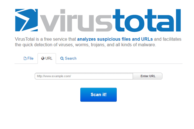 Daha büyük dosyaları taramak için, belki de en iyi çözüm VirusTotal kullanmaktır. Bu araç, hemen hemen istediğiniz herhangi bir bağlantıyı tarayacak bir çevrimiçi kötü amaçlı yazılım denetleyicisidir.