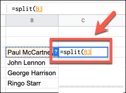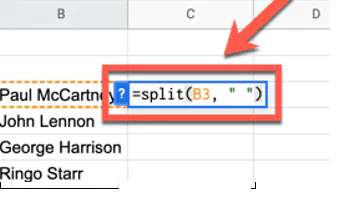 SPLIT kullanarak Google Dokümanlar’da adları ayırmak için: