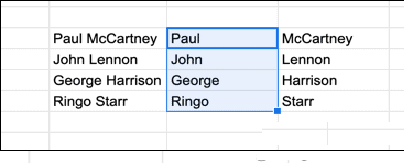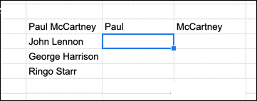 yukarıdaki yöntemlerin her ikisi de, biri ad, diğeri soyadı için olmak üzere iki veri sütunu oluşturur.